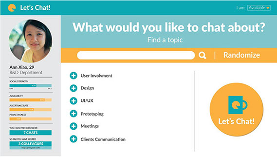 To do this we came up with a fictional company (LETOLUTI) and a set of persona's to develop a tool based on several theories of behaviour change (self-determination theory) that would stimulate social interaction between colleagues.